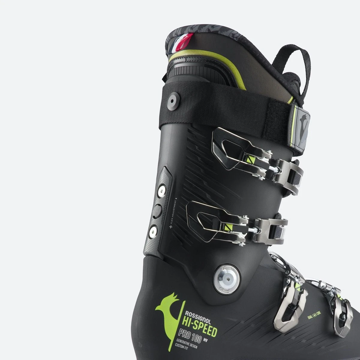 Rossignol Hi-Speed Pro 100 MV skistøvler har justerbar flex og kantning, der giver dig mulighed for at personliggøre støvlens pasform og respons, så den matcher dit skiløb. Støvlen har All-Terrain Grip som giver en mere naturlig gangbevægelse og øget greb på skien.